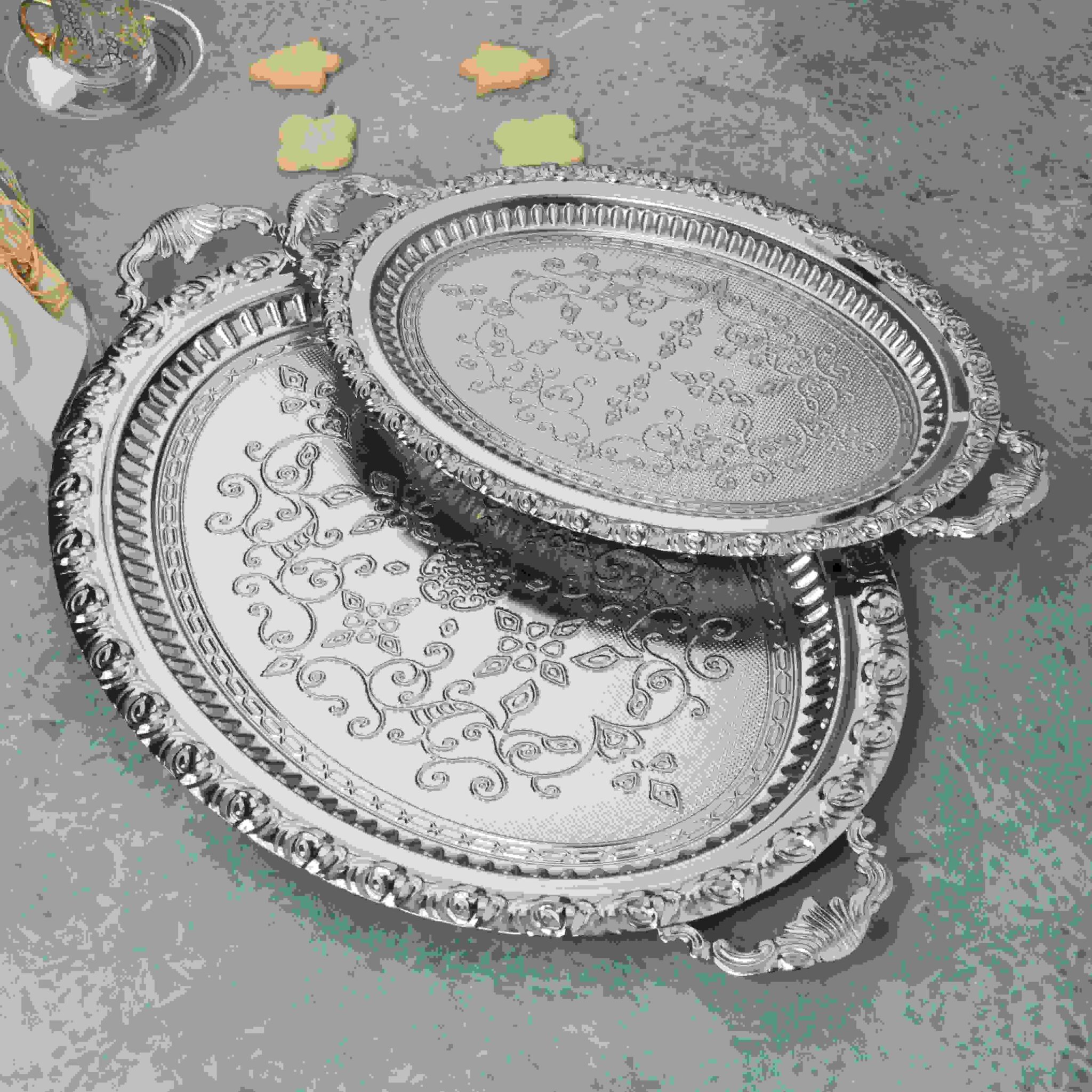 2er Tablett Set 2 teilig Maße kleines Tablett: ca. 32cm x 23,5cm (Ohne Griffe) Maße großes Tablett: ca. 44cm x 33,5cm (Ohne Griffe) Hinweis: nicht nass abstellen, sondern Produkt abtrocknen nicht Spülmaschinen geeignet