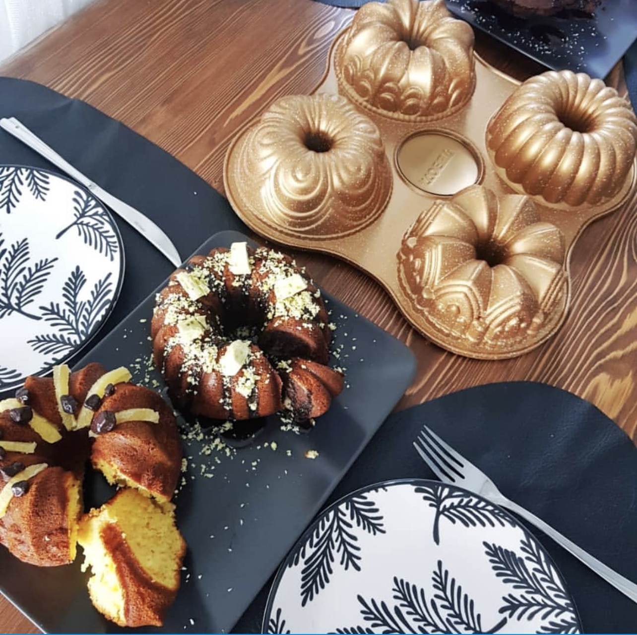 - 4 verschiedene Kuchenformen in einer Backform (ca. 14cm x 5cm)