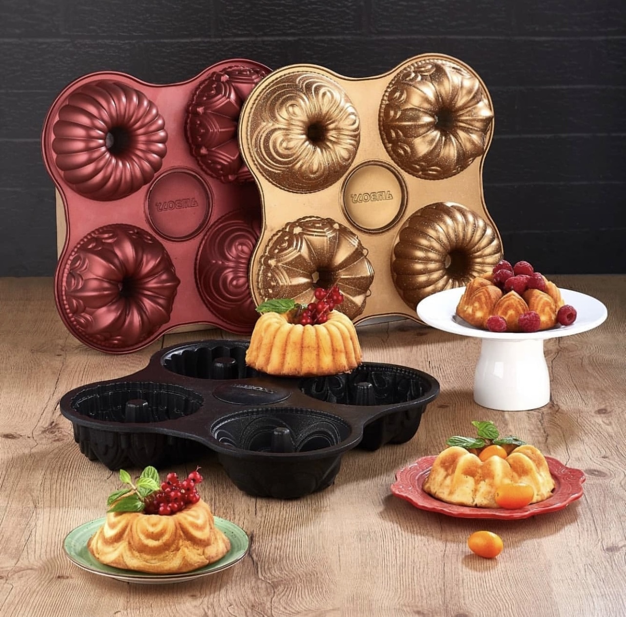 • 4 verschiedene Kuchenformen in einer Backform (ca. 14cm x 5cm)
