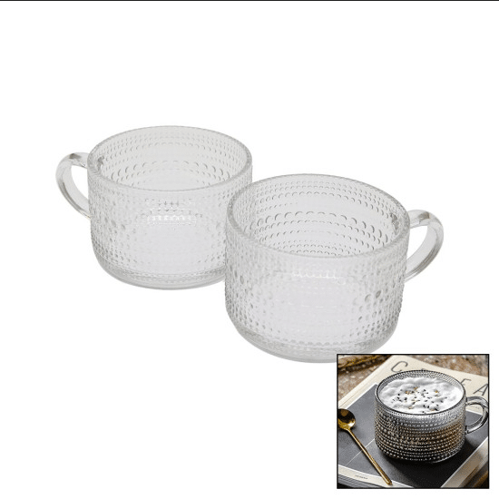 “Aron” Henkelglas 2 Stück Volumen: ca. 410cc Durchmesser: ca. 10,5cm Höhe: ca. 7cm Material: Glas Spülmaschinen geeignet