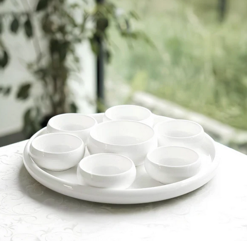 “Belicia” Snackschalen Set 8 teilig 1x Runder Teller ca. 32cm 1x Snackschale ca. 11cm 6x kleine Snackschalen ca. 8,5cm Material: Porzellan