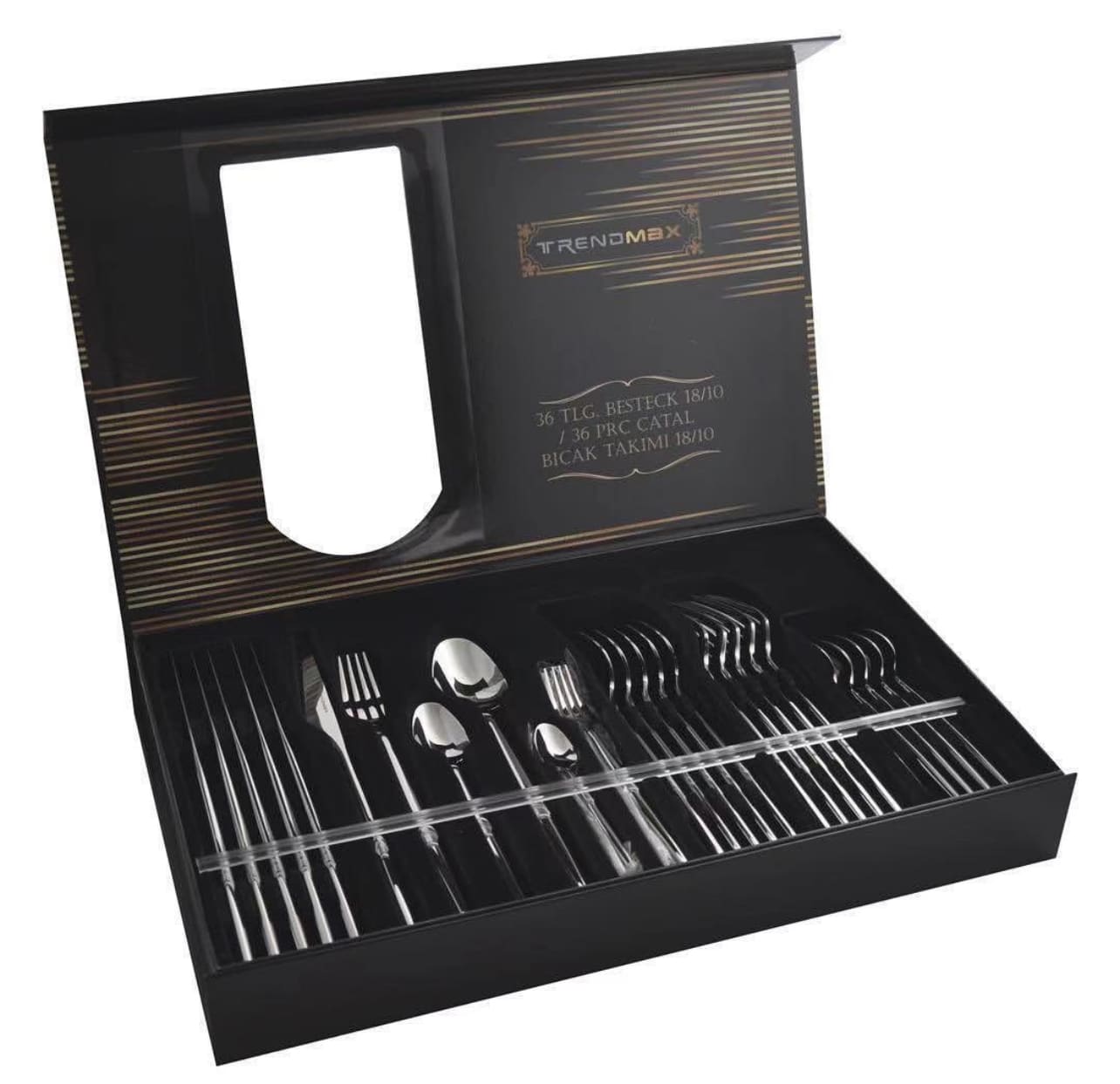 Besteck Set 6x Esslöffel 6x Gabel 6x Messer 6x Dessertlöffel 6x Dessertgabel 6x Teelöffel Farbe: Silber 18/10 Edelstahl Spülmaschinen geeignet