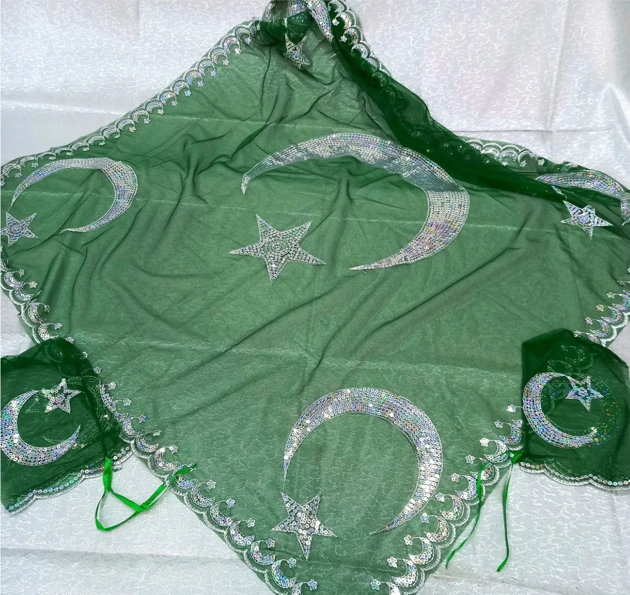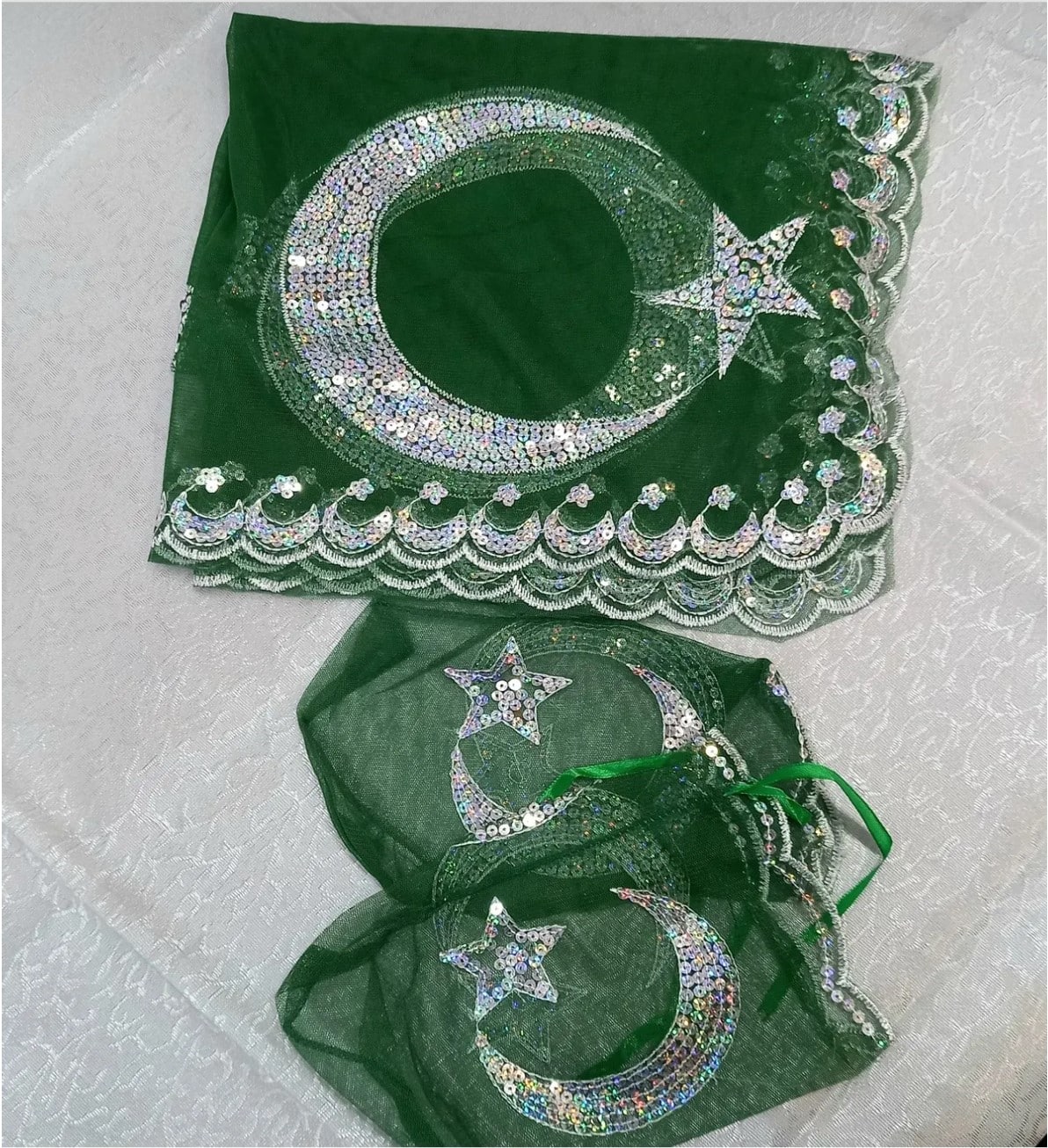 Bräutigam Schultertuch “Ay Yildiz” 3 teilig 1x Schultertuch 2x Handschuh Maße Tuch: ca. 100cm x 100cm Material: Tüll mit Pailletten
