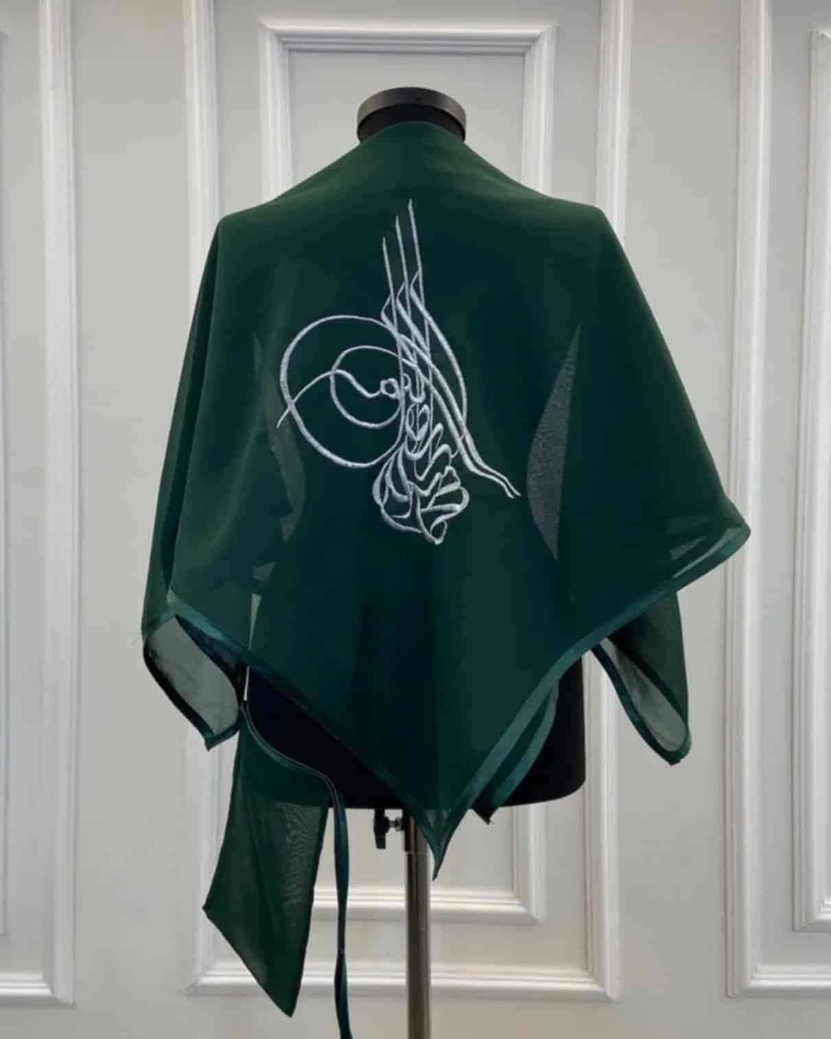 Bräutigam Schultertuch “Tugra” 2 teilig 1x Schultertuch 1x Handschuh Maße Tuch: ca. 100cm x 100cm Material: Chiffon