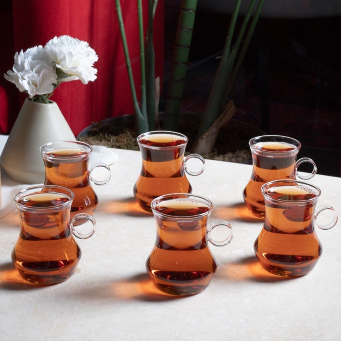 “Dem” Teegläser 6 Stück Volumen: ca. 200ml Höhe: ca. 8,2cm Material: Borosilikatglas Spülmaschinen geeignet