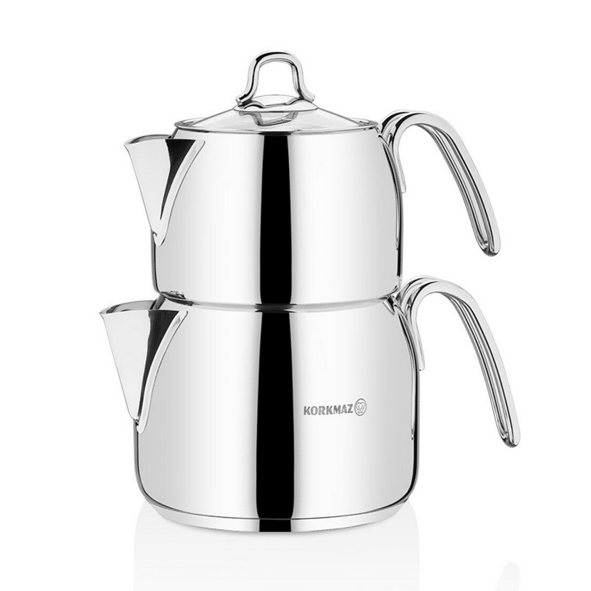 Korkmaz “Perla Mega” Volumen: ca. 1,8L / 3,2L Material: 18/10 Cr-Ni Edelstahl Farbe: Silber Geeignet für alle Herdarten, inkl. Induktion