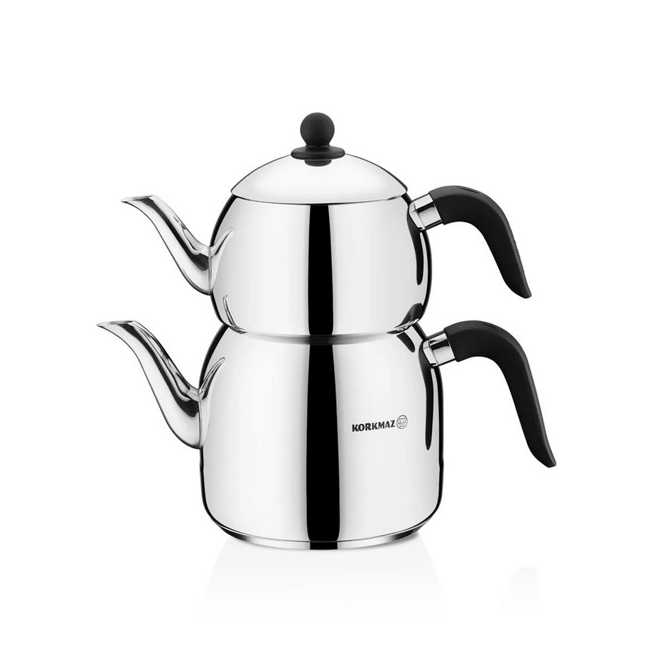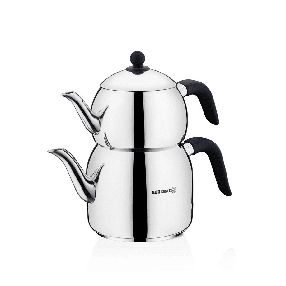 Korkmaz “Retro” Volumen: ca. 1,1L / 2,5L Material: 18/10 Cr-Ni Edelstahl Farbe: Silber Geeignet für alle Herdarten, inkl. Induktion