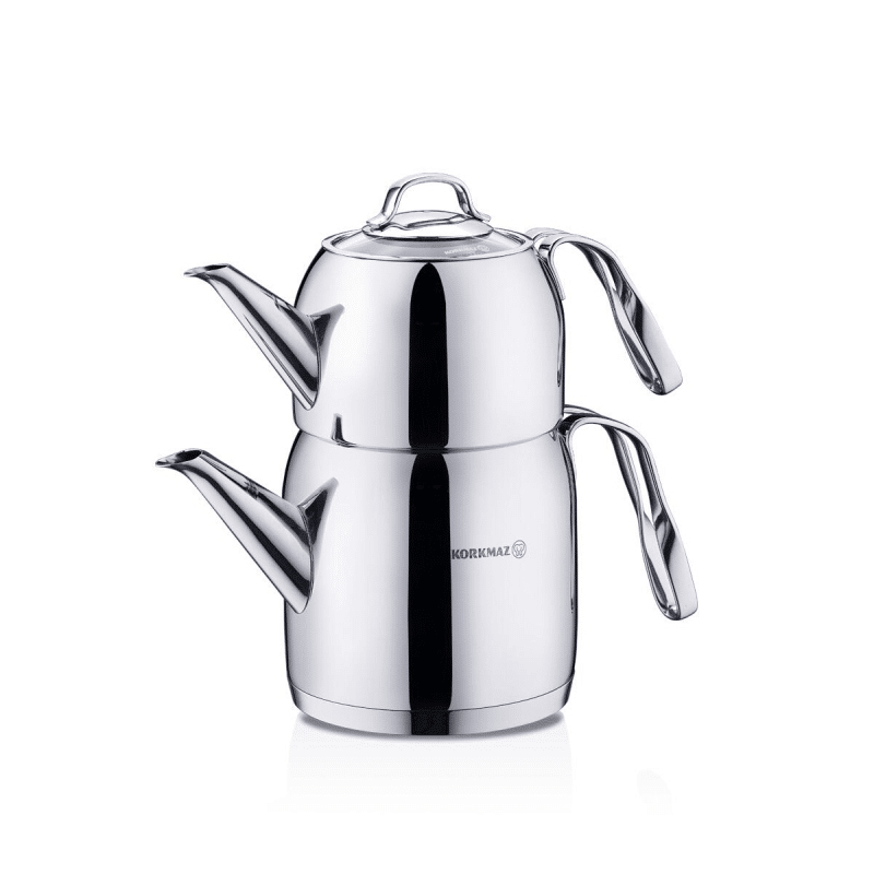 Korkmaz “Steama” Volumen: ca. 0,9L / 1,6L Material: 18/10 Cr-Ni Edelstahl Farbe: Silber Geeignet für alle Herdarten, inkl. Induktion