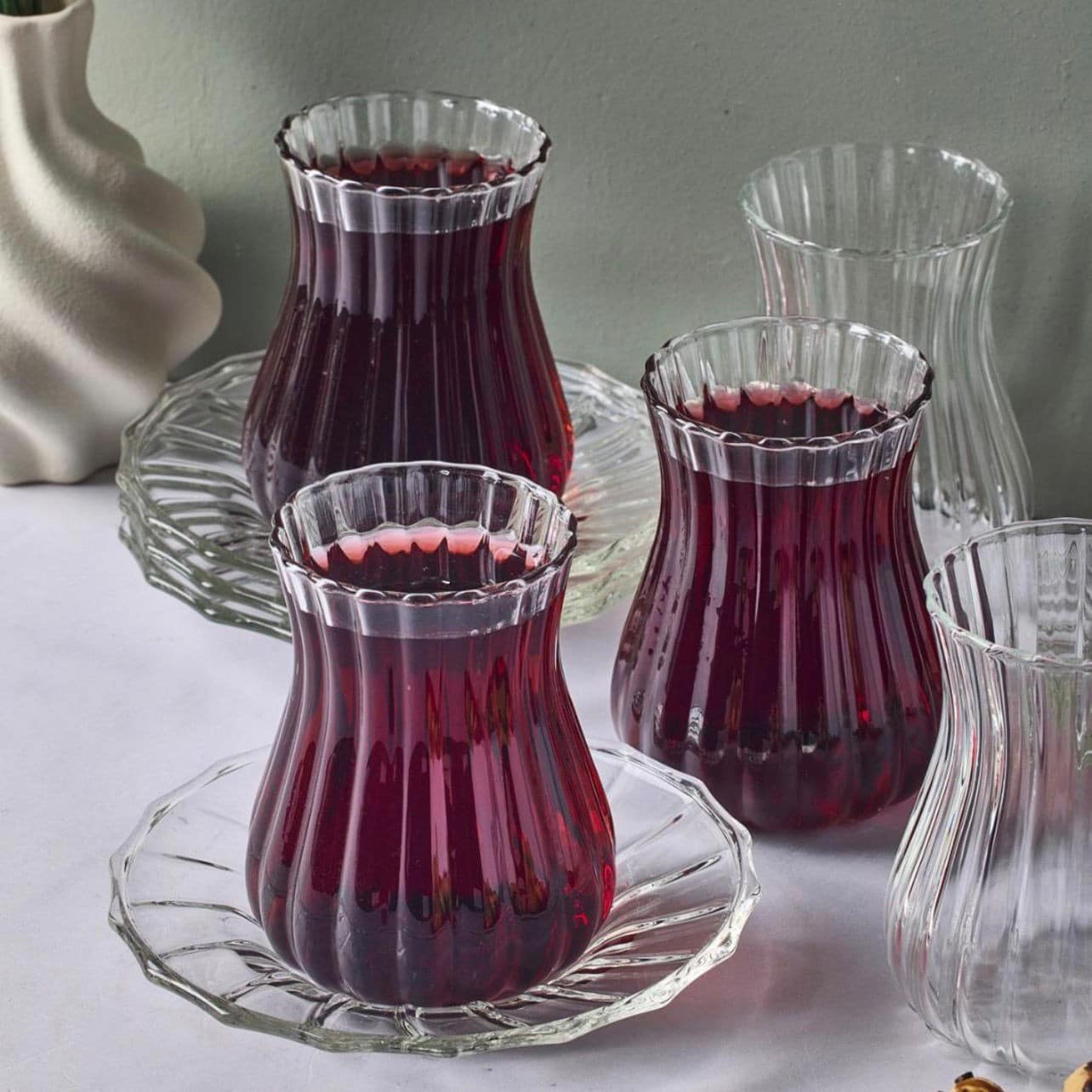 “Luana” Teegläser Set 12 teilig 6x Teeglas 6x Unterteller Material: Borosilikatglas Spülmaschinen geeignet
