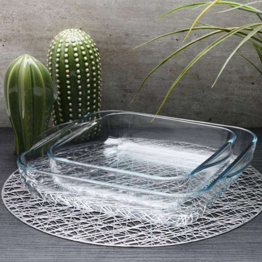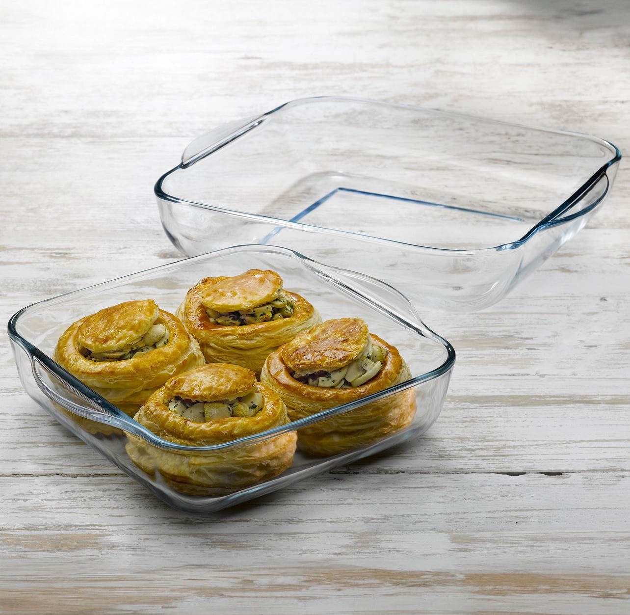Pasabahce “Borcam” 2 Stück Volumen: ca. 3200cc / ca. 1950cc Maße: ca. 28cm x 27cm / ca. 22cm x 25cm Material: Glas für den Ofen geeignet Spülmaschinen geeignet backen, kochen und servieren! Mit dieser Auflaufform ist alles möglich