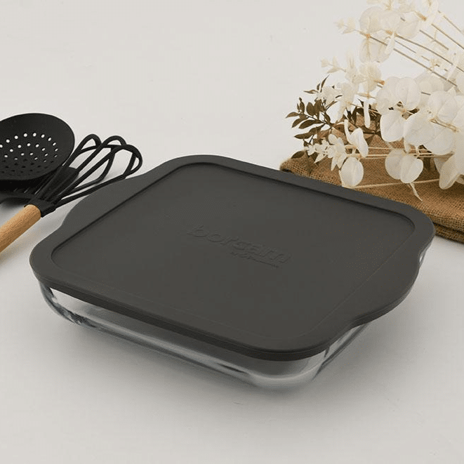 Pasabahce “Borcam” 1 Stück Volumen: ca. 3200cc Maße: ca. 32cm x 28cm Material: Glas/Kunststoff Farbe: Grau Spülmaschinen geeignet für den Ofen geeignet (ohne Deckel)