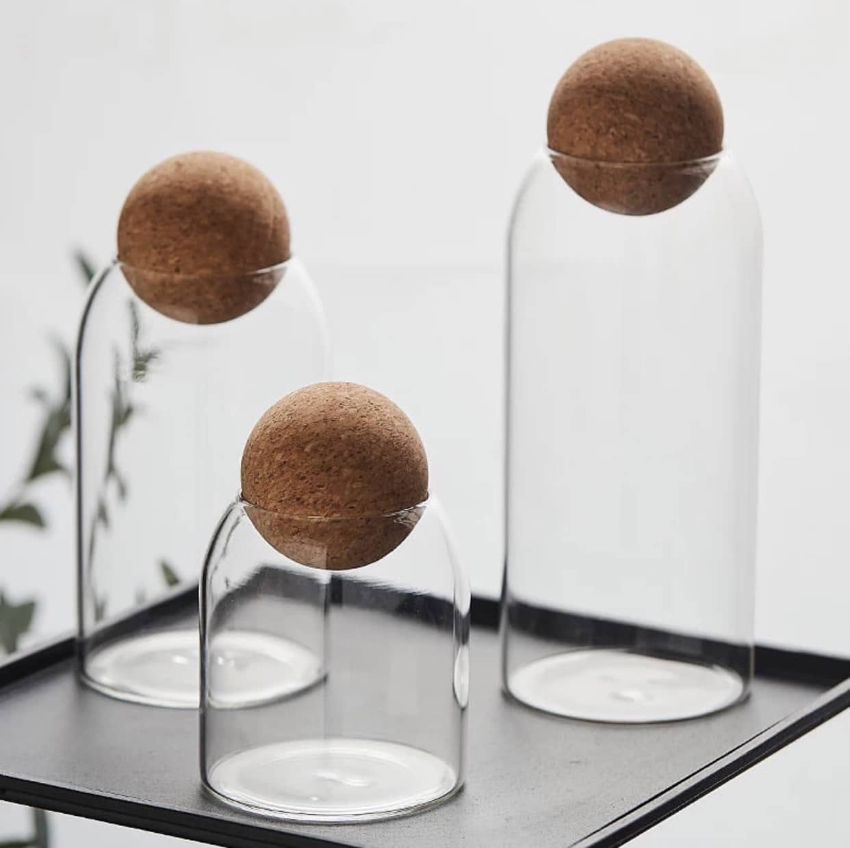 “Romelu” Vorratsbehälter 6 teilig 3x Vorratsbehälter 3x Korkendeckel Höhe: ca. 24cm / 19cm / 14cm Material: Glas