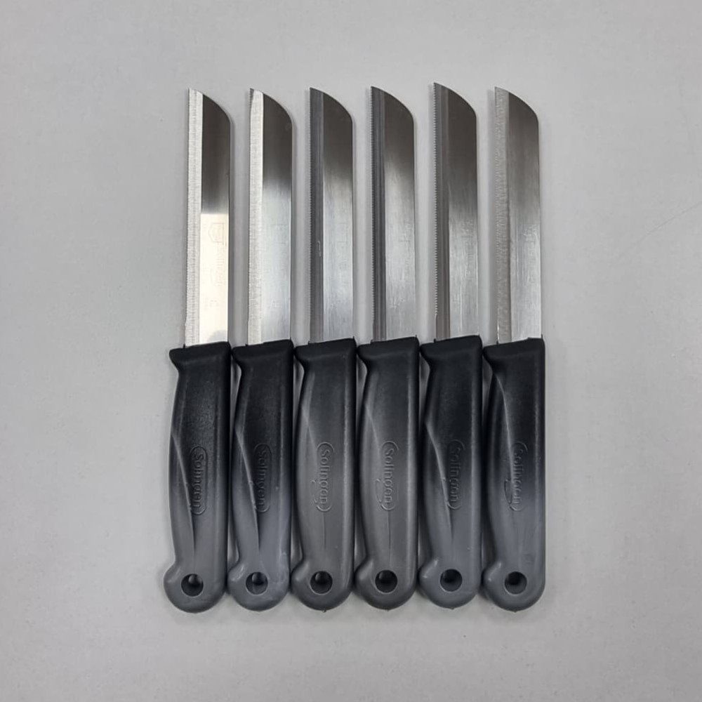 Solingen 1 Stück oder 6 Stück Länge: ca. 18,5cm Klinge: ca. 8,5cm Farbe: Schwarz/Grau Material: Kunststoff / 18/10 Edelstahl 100% original Solingen Qualität