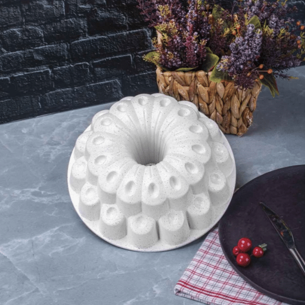 Tac Backform “Özlem” 1 Stück Maße: ca. 24cm x 10cm Material: Granit-Guss Gewicht: ca. 1000gr Farbe: Weiß/Creme Antihaftbeschichtung