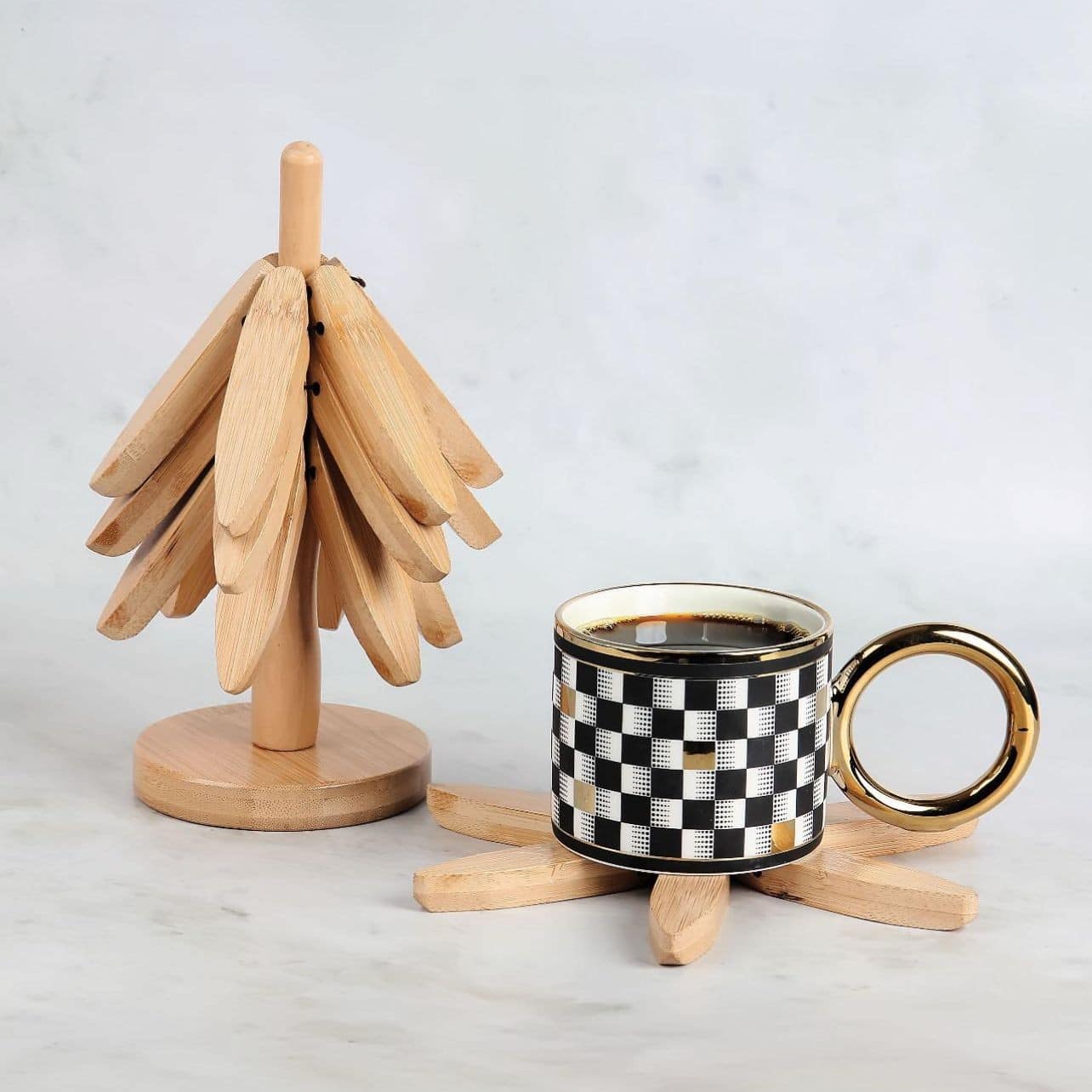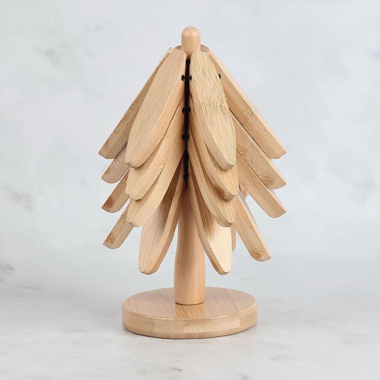 “Tree” Bambus Untersetzer-Set 5 teilig 1 Fuß / 4 Untersetzer Höhe: ca. 21cm Durchmesser Untersetzer: ca. 20cm Material: Bambus