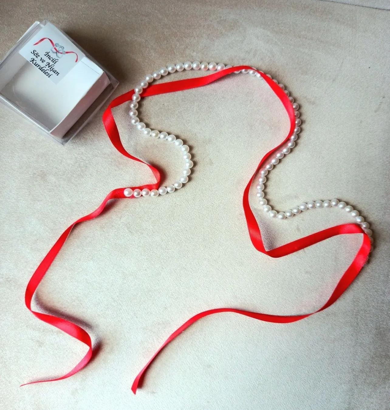 Verlobungsband mit Perlen 1 Stück Länge: ca. 100cm Farbe: Rot / Weiß