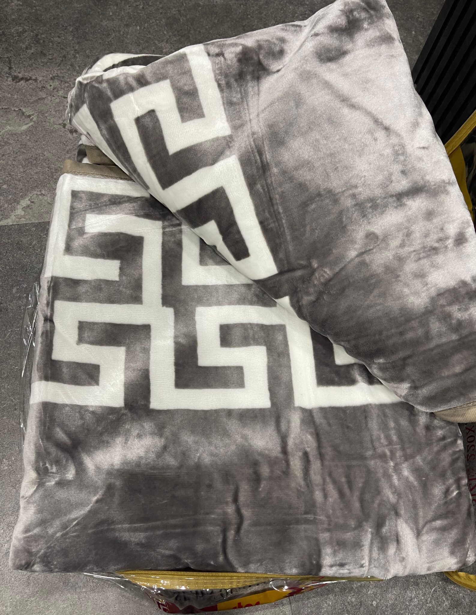 Wolldecke für Doppelbett 1 Stück Maße: ca. 220cm x 240cm Doppellagig Farbe: Grau Material: Polyester Gewicht: ca. 3,5kg Farbabweichungen zwischen Bildschirmdarstellung und Originalprodukt sind möglich!