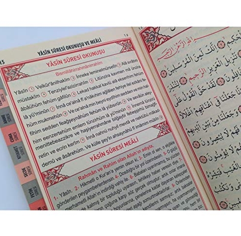 “Yasin” Surenbuch 1 Stück Seitenzahl: 192 Seiten Größe: ca. 24cm x 16cm Sprache: Arabisch / mit türkischer Umschrift und Übersetzung Audio Anhörung möglich Mit Inhaltsverzeichnis